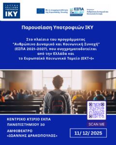 Ημερίδα παρουσίασης των προγραμμάτων υποτροφιών του ΙΚΥ η οποία θα πραγματοποιηθεί στην Αθήνα, στο Κεντρικό κτήριο του ΕΚΠΑ (Πανεπιστημίου 30), στο αμφιθέατρο «Ιωάννης Δρακόπουλος», την Πέμπτη 11 Δεκεμβρίου 2025 και ώρα 10.00 π.μ. Η ημερίδα θα εστιάσει κυρίως στα προγράμματα που συγχρηματοδοτούνται από την Ελλάδα και το Ευρωπαϊκό Κοινωνικό Ταμείο (ΕΚΤ+) στο πλαίσιο του προγράμματος “Ανθρώπινο Δυναμικό και Κοινωνική Συνοχή” (ΕΣΠΑ 2021–2027), και ειδικότερα: